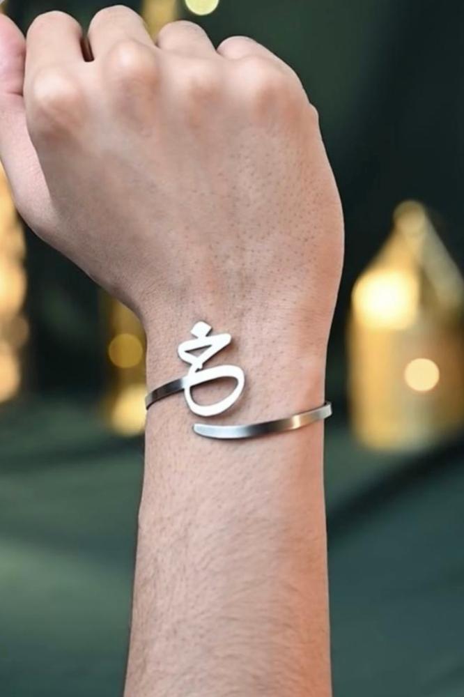 - أسوارة أنيقة مَصنوعة بدقة (ذهبية أو فِضية) مَنقوش عليها اسمك أو الحرف الذي تختارينه بخطوط عصرية أو كلاسيكية.