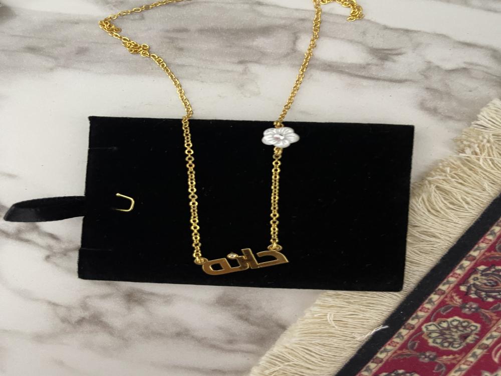 - سِلسال أنيق مَصنوع بدقة (ذهبي أو فِضي) مَكتوب عليه اسمكِ أو أي كلمة تختارينها بخطوط عصرية أو كلاسيكية.